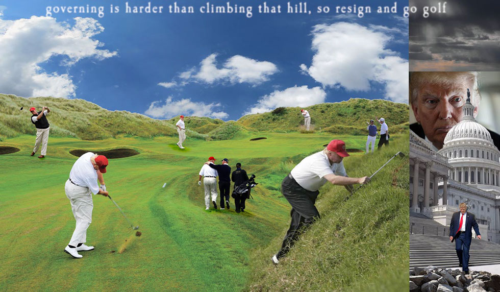 golfing rather than working